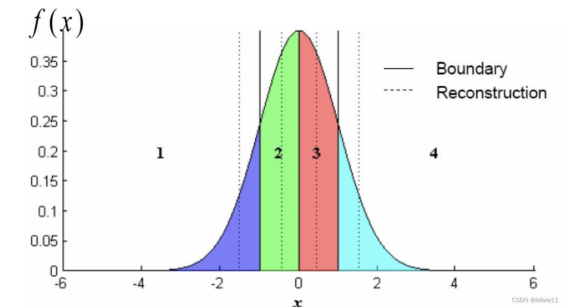 Lloyd-Max量化又称为pdf-最佳量化器,其核心思想就是在密的地方细量化,在疏的地方粗量化,从而使得每个量化区间的输入数量大致相等: