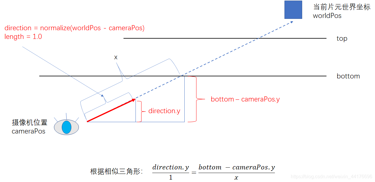 point += direction * (abs(cameraPos.y - top) / abs(direction.y));