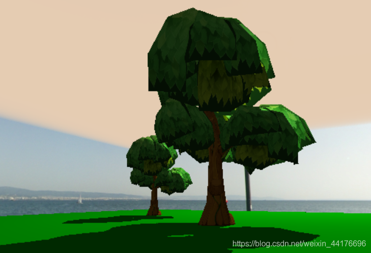 此外,还有一个问题,就是目前的云层会不正确地遮挡本应该遮挡云层的物体,比如树明明在云层之下,却被云层遮挡了。尤其是我们增大云层的范围 width 的时候: