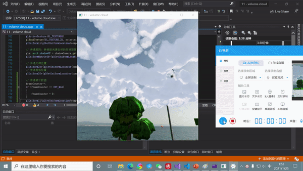 然后重新启动程序,可以看到 3D 噪声的效果还是非常惊艳的,能够更进一步逼近现实中的云: