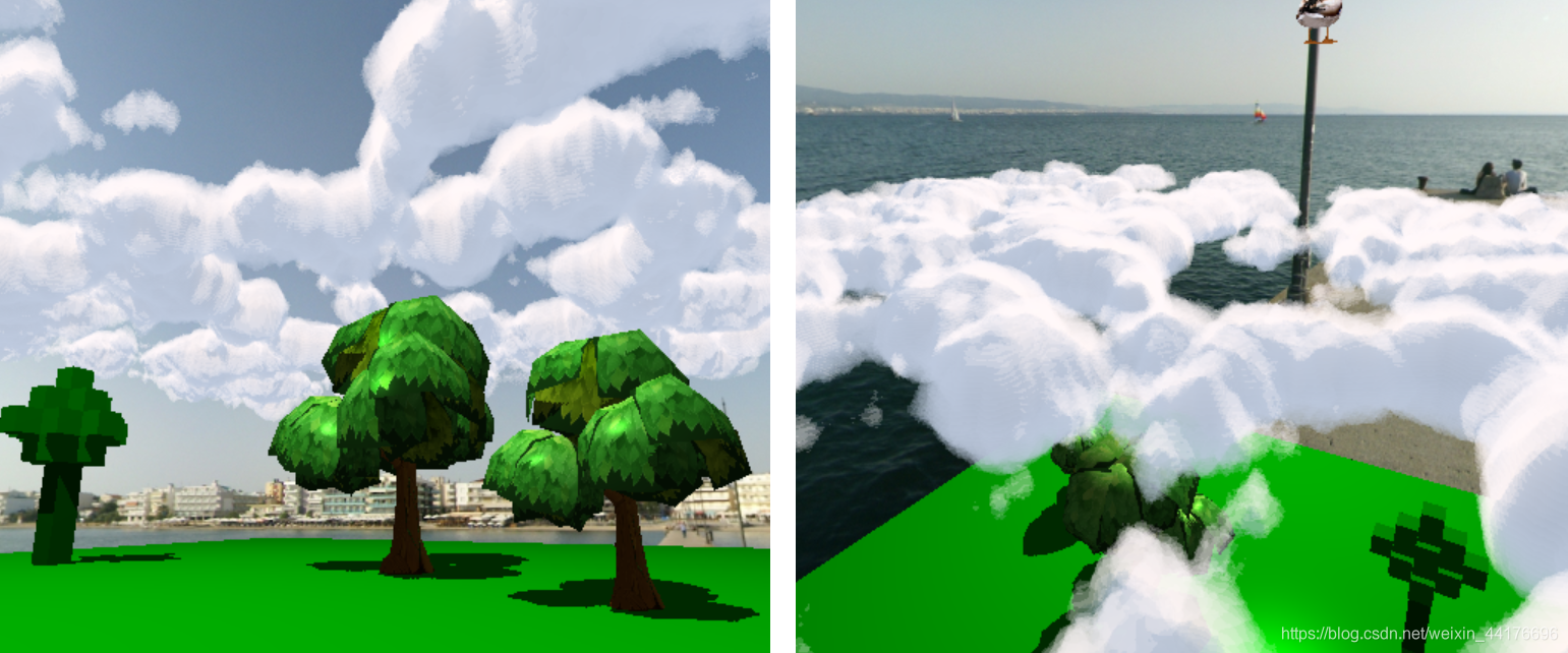 Minecraft 早期的体积云光影就是这么做的,如果你贴近观察,就会发现其实体积云是非常模糊的: