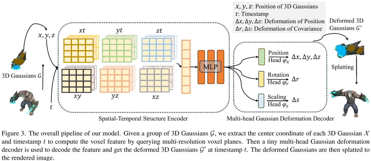 核心思想:计算高斯点位移ΔG\Delta\mathcal GΔG,然后直接对高斯点云G\mathcal GG进行移动得到下一帧高斯点云G′\mathcal G'G′: